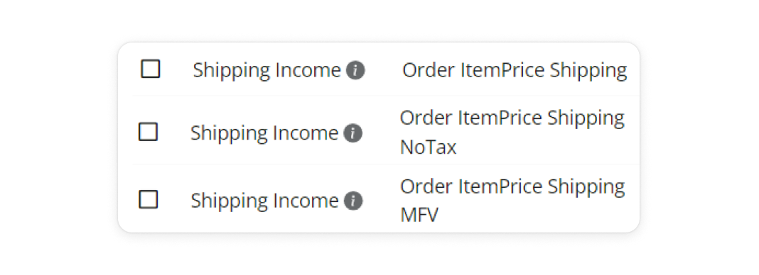 Shipping income-related transactions (e.g., Order Item Price Shipping) usually refer to the income sellers earn from charging shipping fees to customers. These transactions can typically be distinguished by containing the term “Item Price”, which refers to the base price of the item being sold on Amazon.